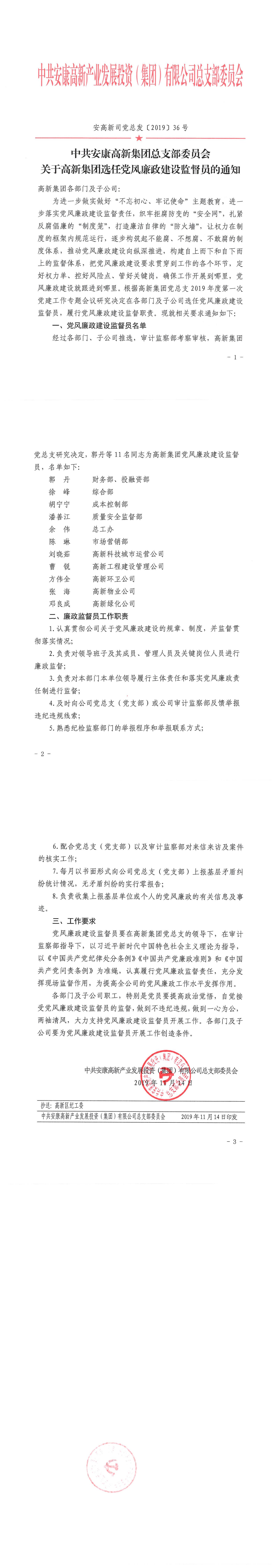 關(guān)于高新集團(tuán)選任黨風(fēng)廉政建設(shè)監(jiān)督員的通知